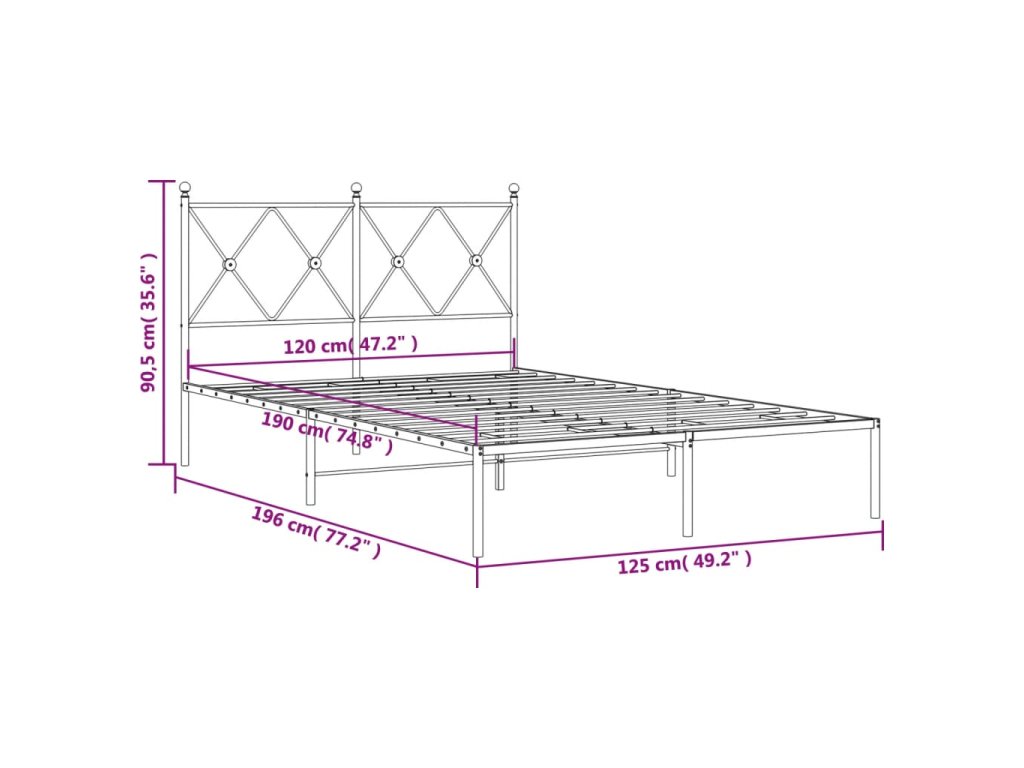 Kovový rám postele s čelem černý 120 x 190 cm 376499