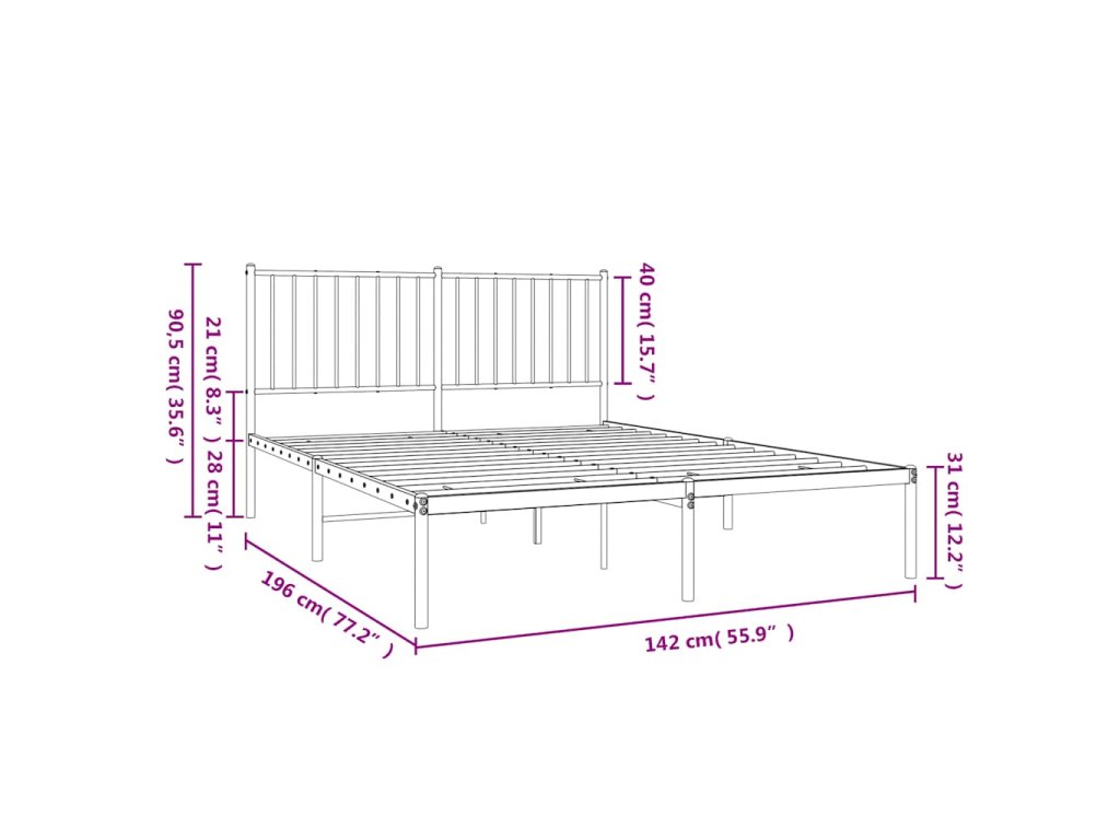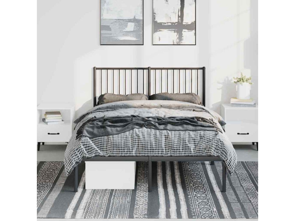 Kovový rám postele s čelem černý 135 x 190 cm 350863