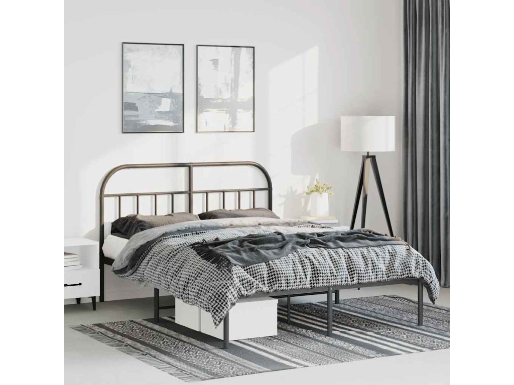 Kovový rám postele s čelem černý 135 x 190 cm 353634