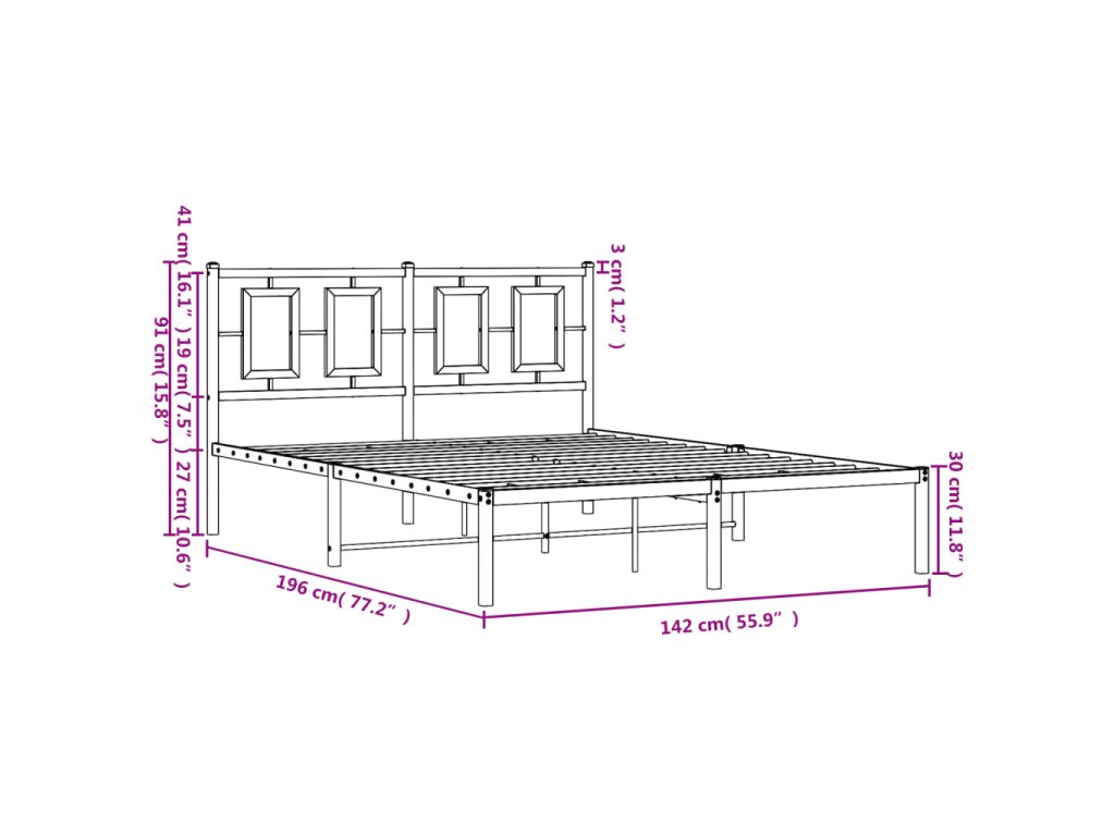 Kovový rám postele s čelem černý 135 x 190 cm 374240