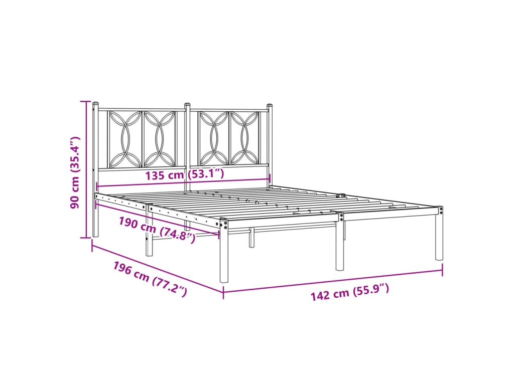 Kovový rám postele s čelem černý 135 x 190 cm 376127