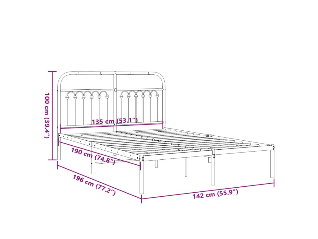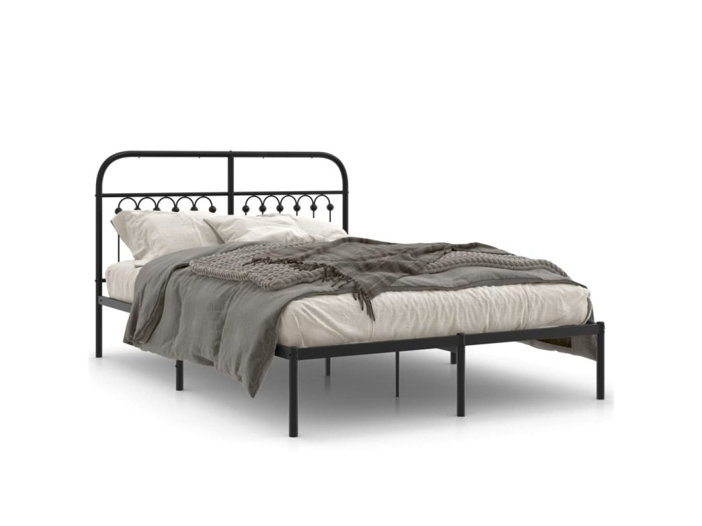 Kovový rám postele s čelem černý 135 x 190 cm 376599