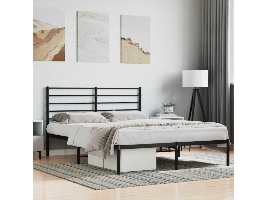 Kovový rám postele s čelem černý 140 x 190 cm 352319