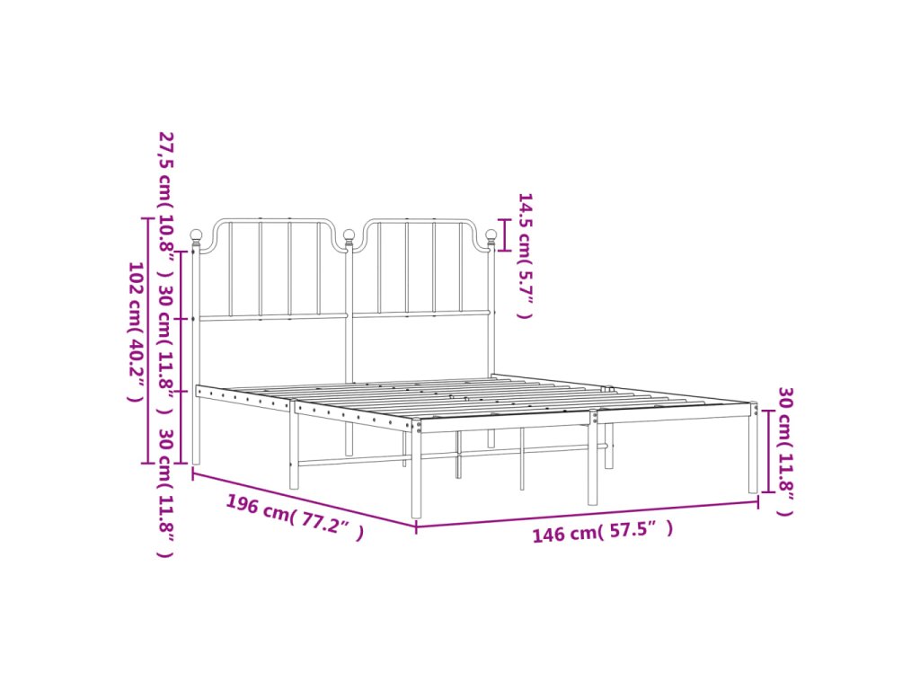 Kovový rám postele s čelem černý 140 x 190 cm 373887