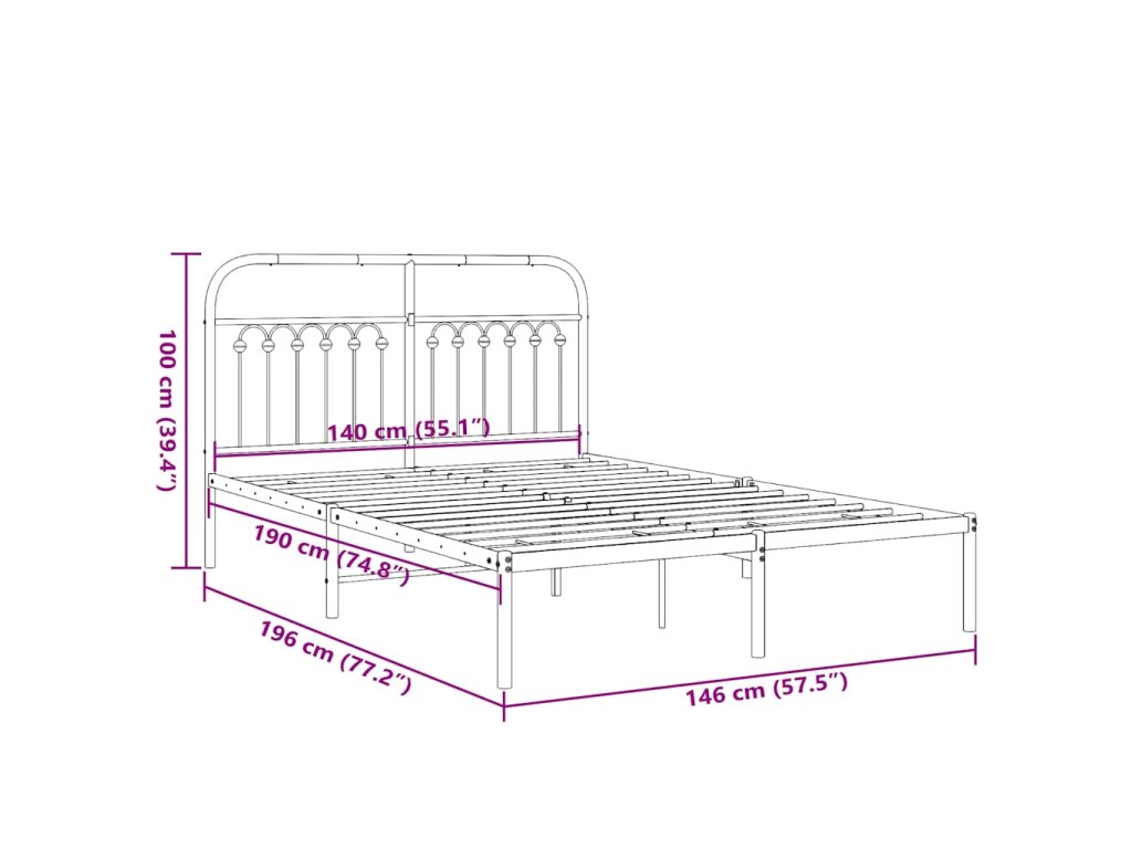 Kovový rám postele s čelem černý 140 x 190 cm 376600