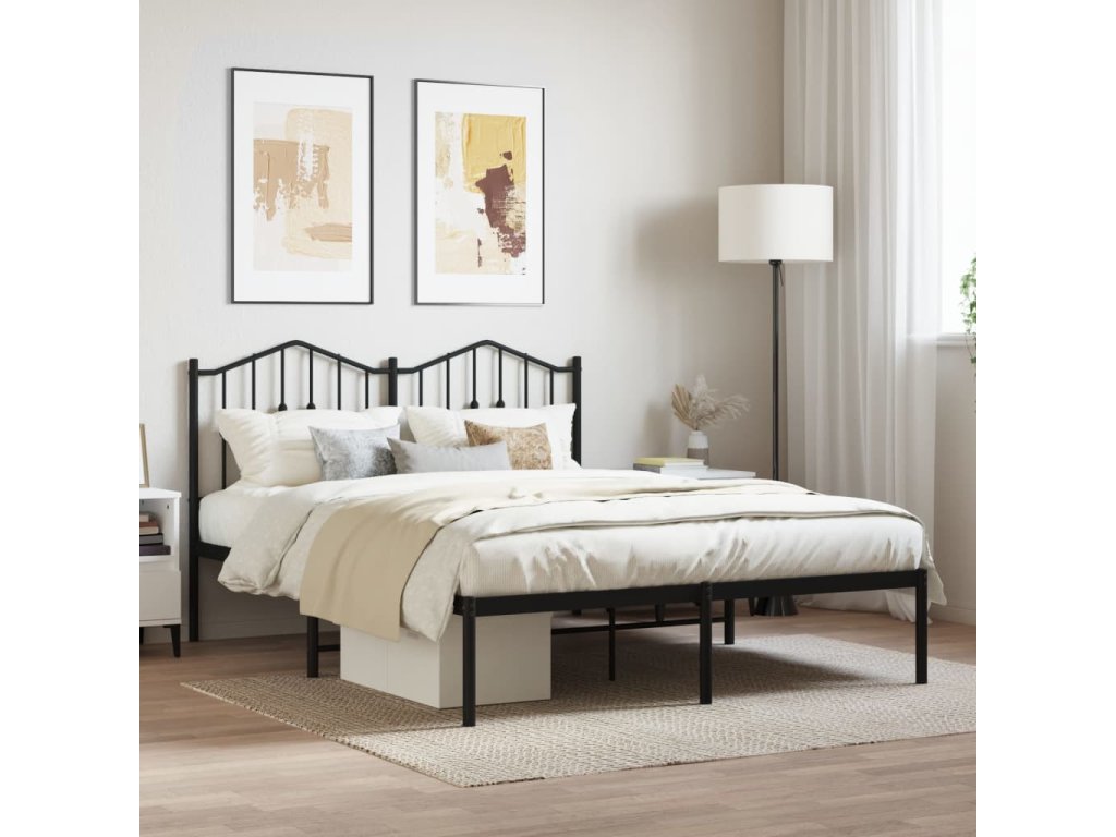 Kovový rám postele s čelem černý 140 x 200 cm 373790