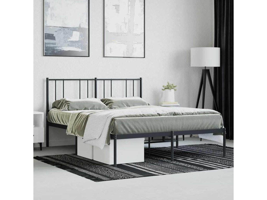 Kovový rám postele s čelem černý 160 x 200 cm 352483