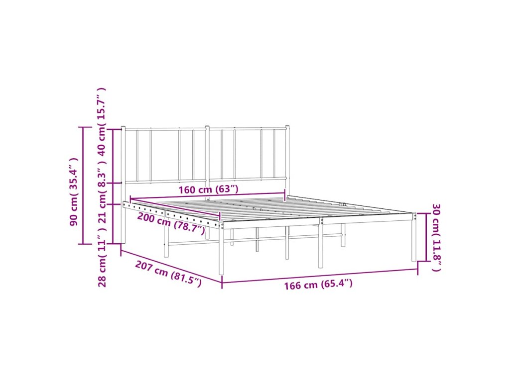 - Kovové lamely a nohy: Kovový rám postele je doplněn kovovými rošty a středovými nohami, které poskytují matraci tolik potřebnou oporu a prodyšnost.
