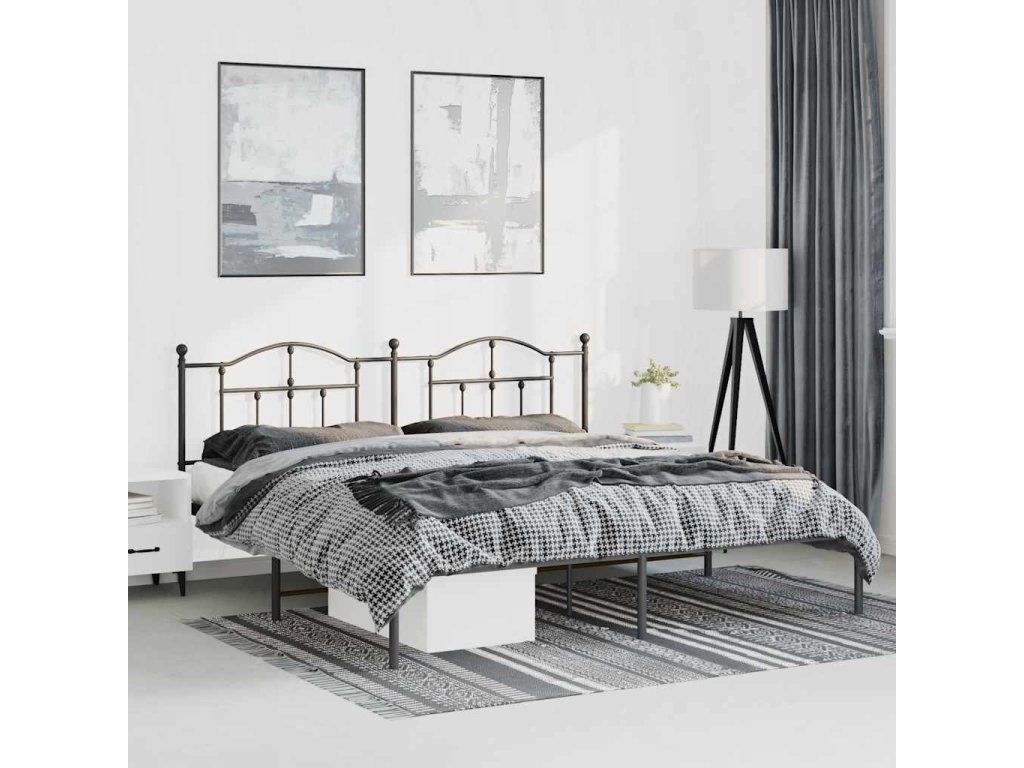 Kovový rám postele s čelem černý 183 x 213 cm 353444