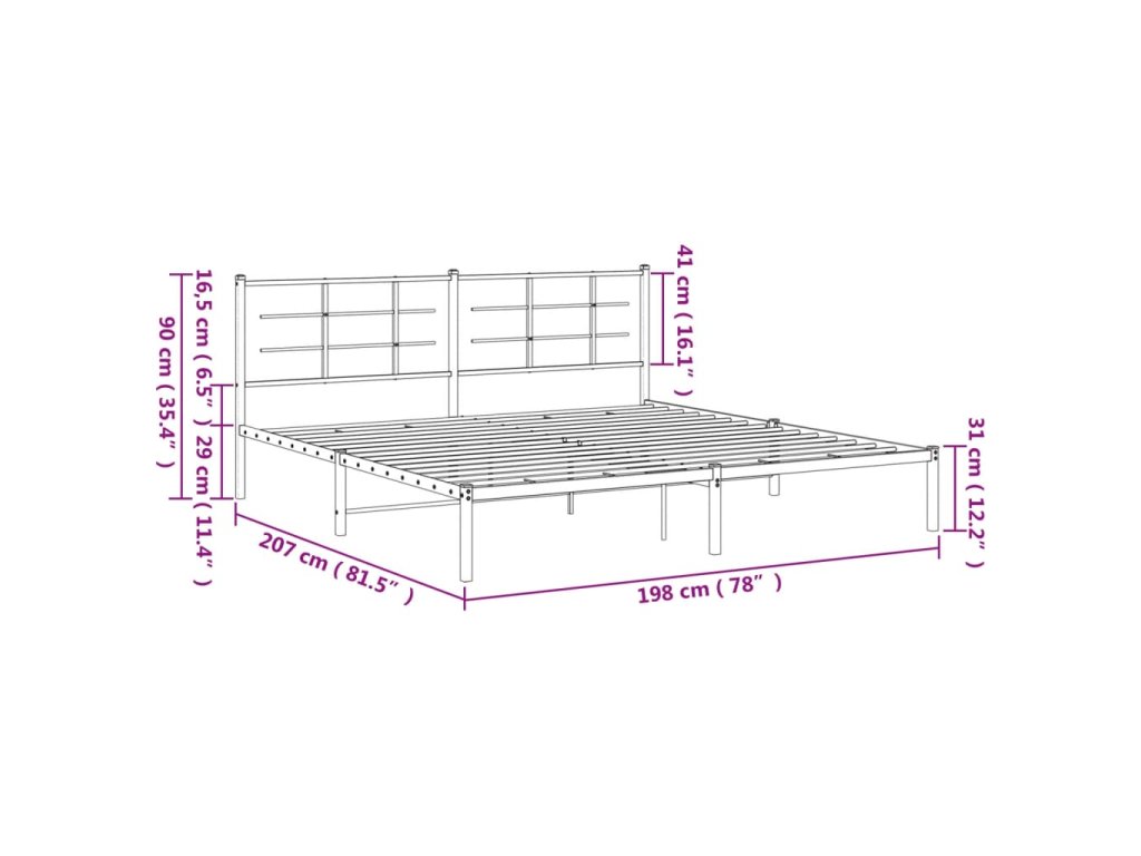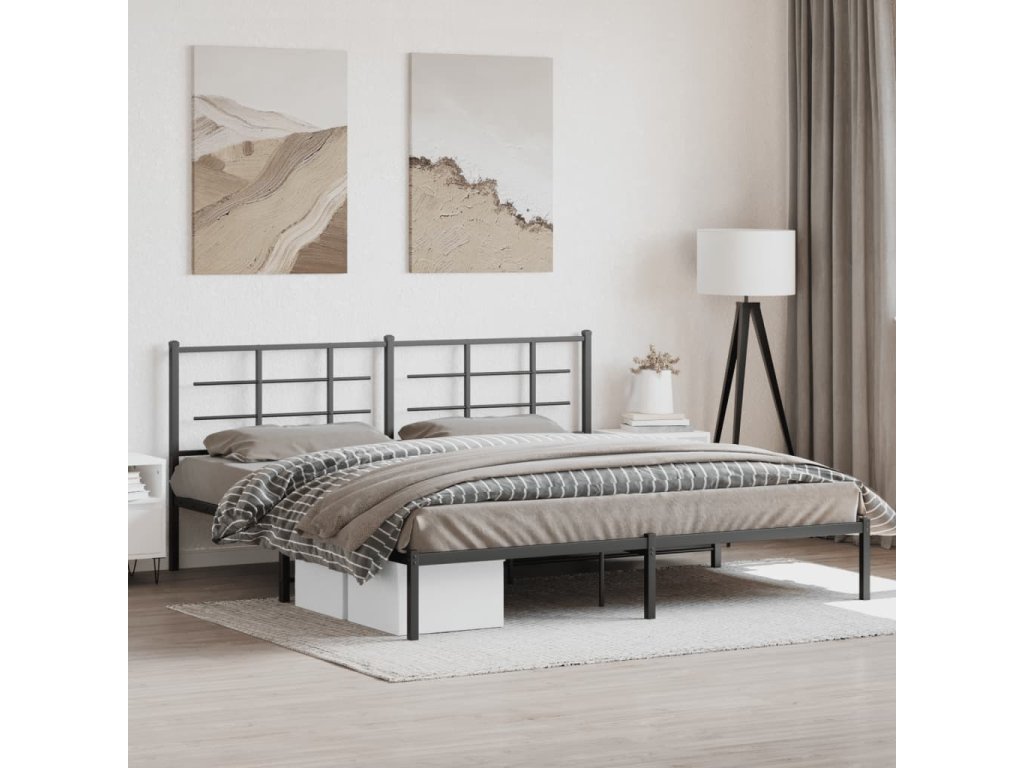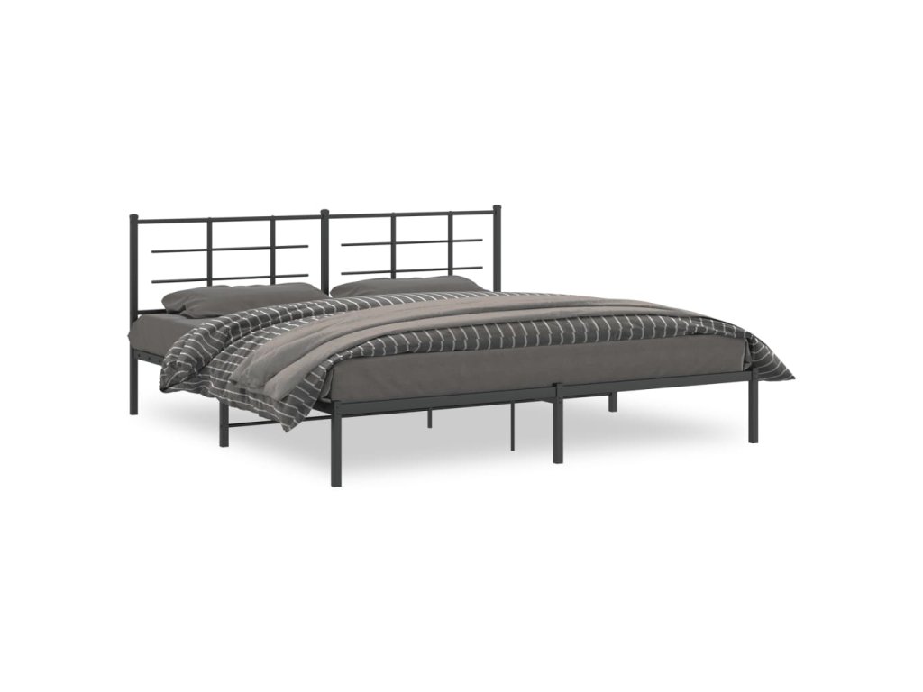 Kovový rám postele s čelem černý 193 x 203 cm 355567