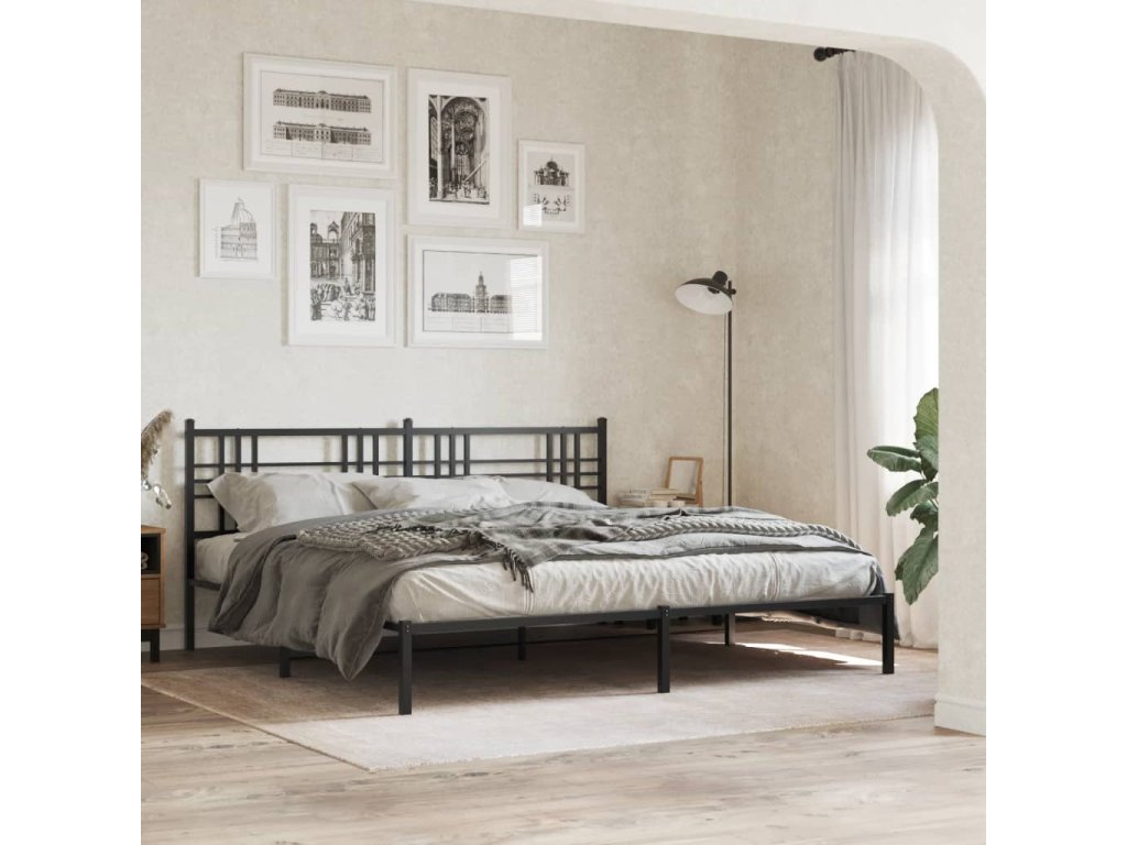 Kovový rám postele s čelem černý 193 x 203 cm 376330