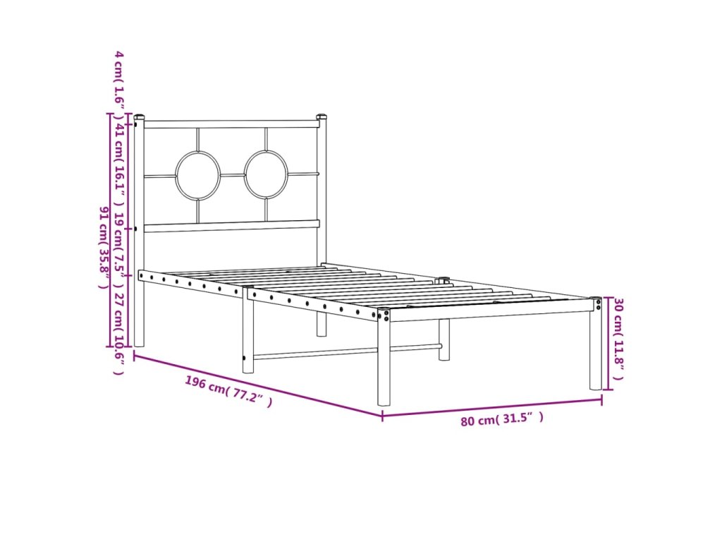 Kovový rám postele s čelem černý 75 x 190 cm 376216