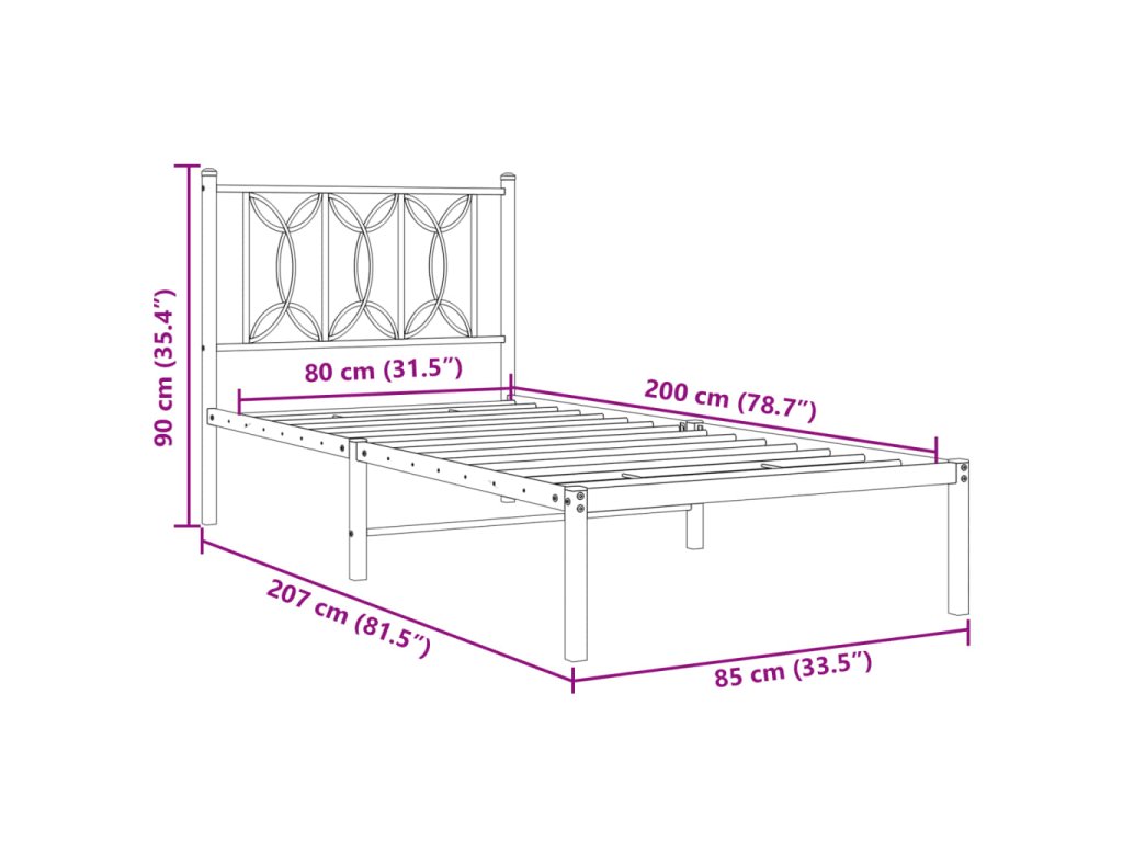 Kovový rám postele s čelem černý 80 x 200 cm 376119