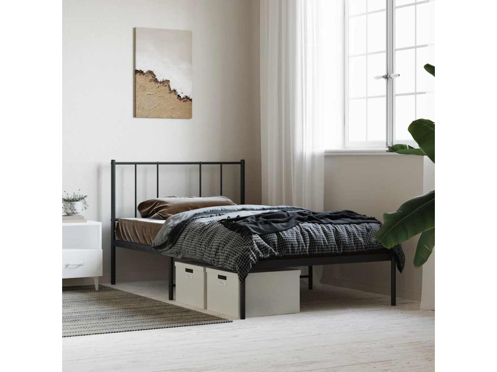 Kovový rám postele s čelem černý 90 x 190 cm 352472