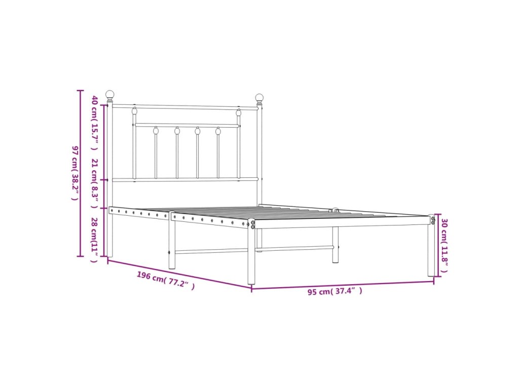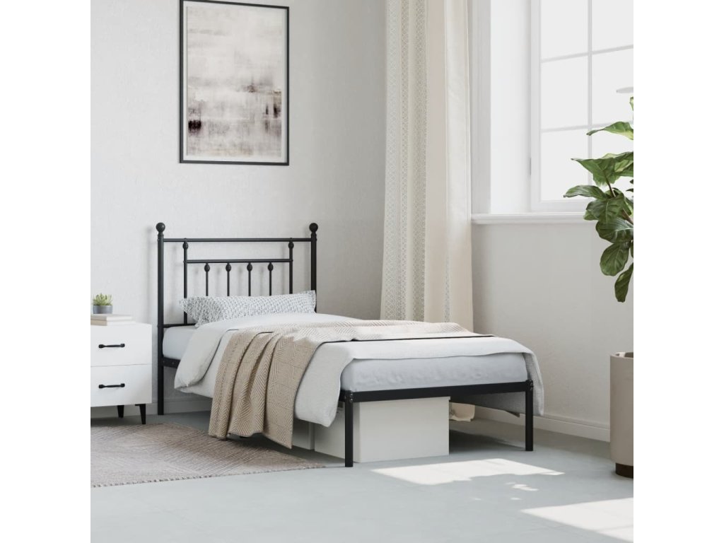 Kovový rám postele s čelem černý 90 x 190 cm 353529