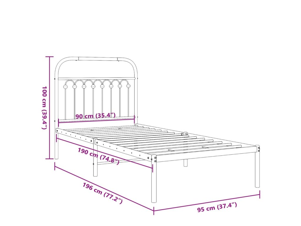 Kovový rám postele s čelem černý 90 x 190 cm 376592