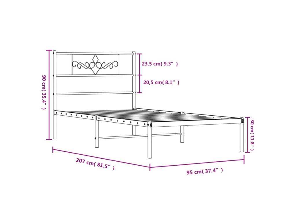 Kovový rám postele s čelem černý 90 x 200 cm 355260