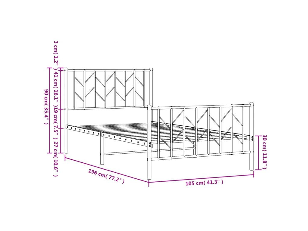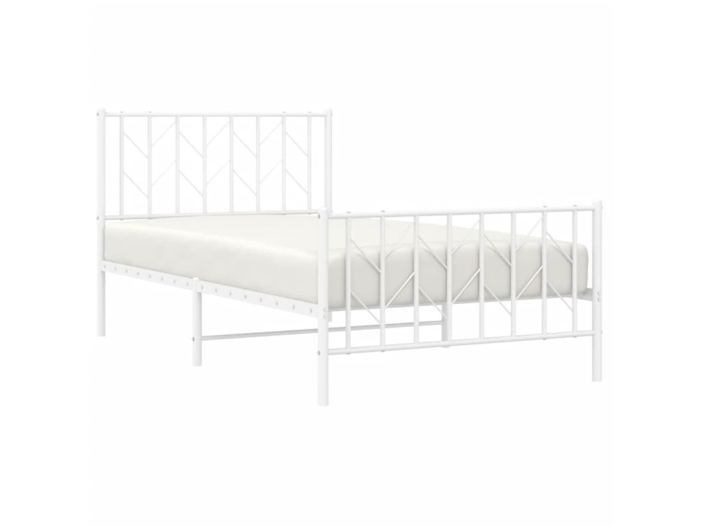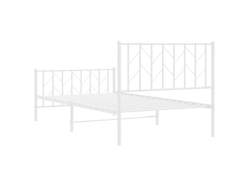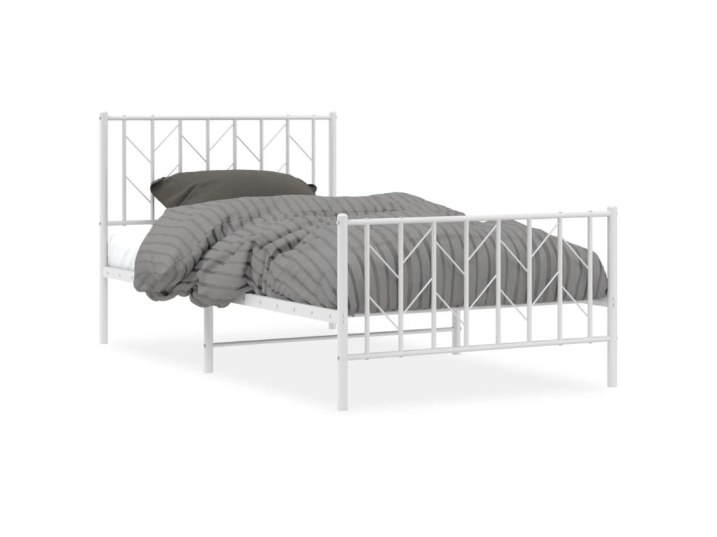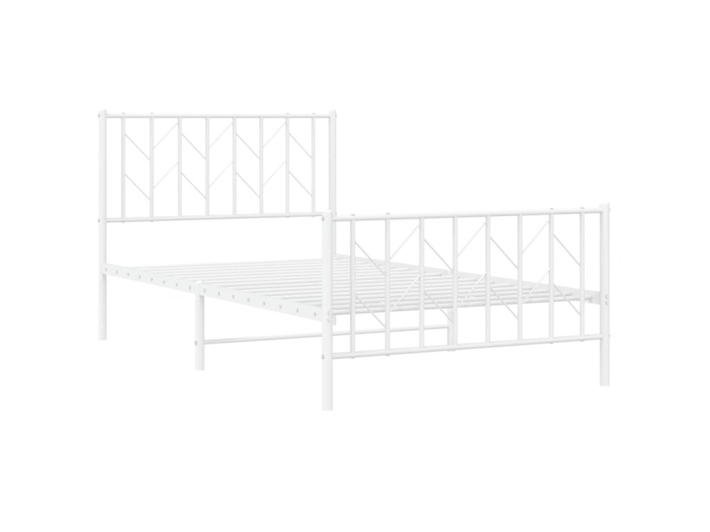 Kovový rám postele s hlavovým a nožním čelem bílý 100 x 190 cm 374498