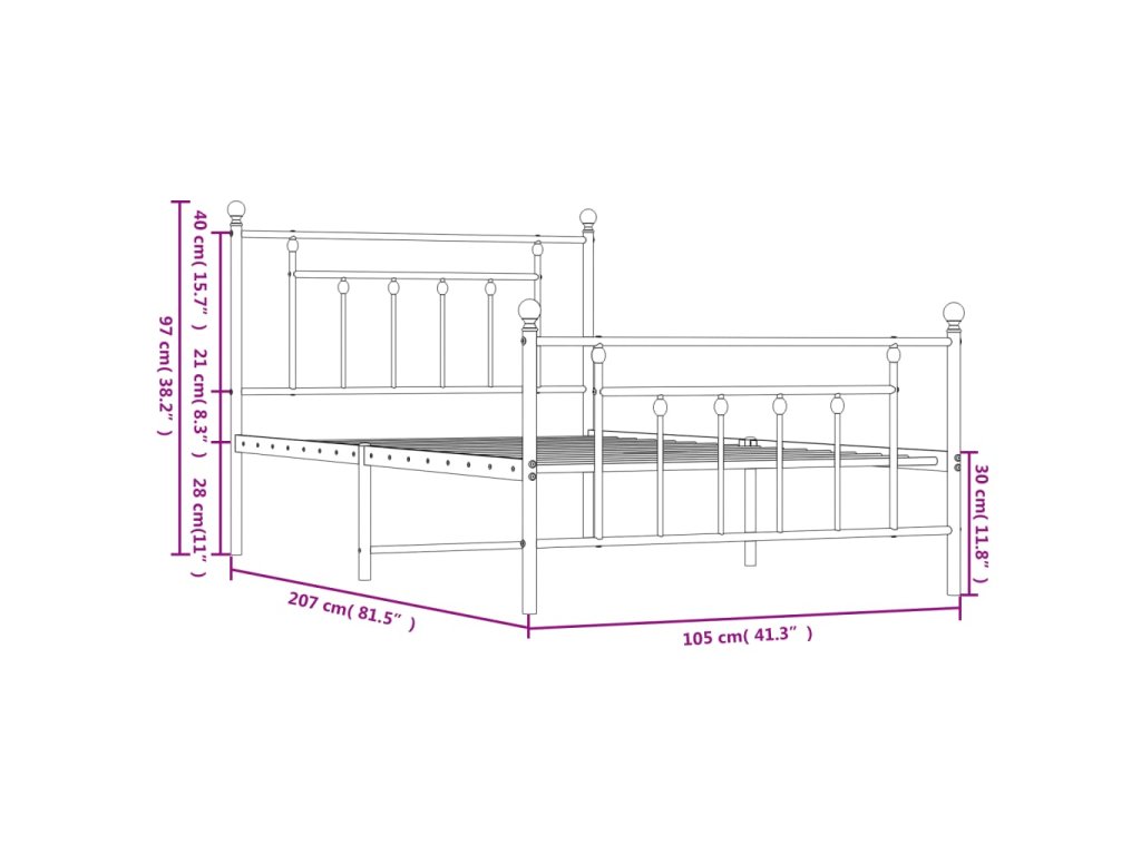 Kovový rám postele s hlavovým a nožním čelem bílý 100 x 200 cm 353599