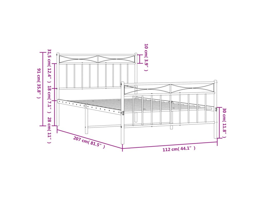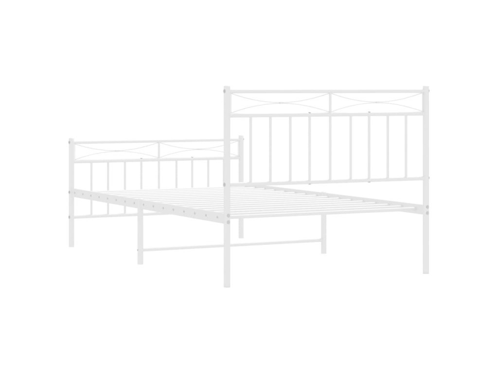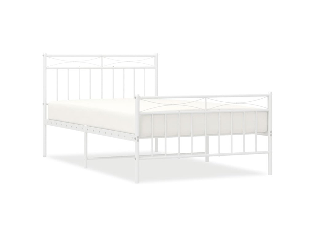 Kovový rám postele s hlavovým a nožním čelem bílý 107 x 203 cm 373754