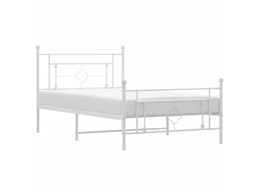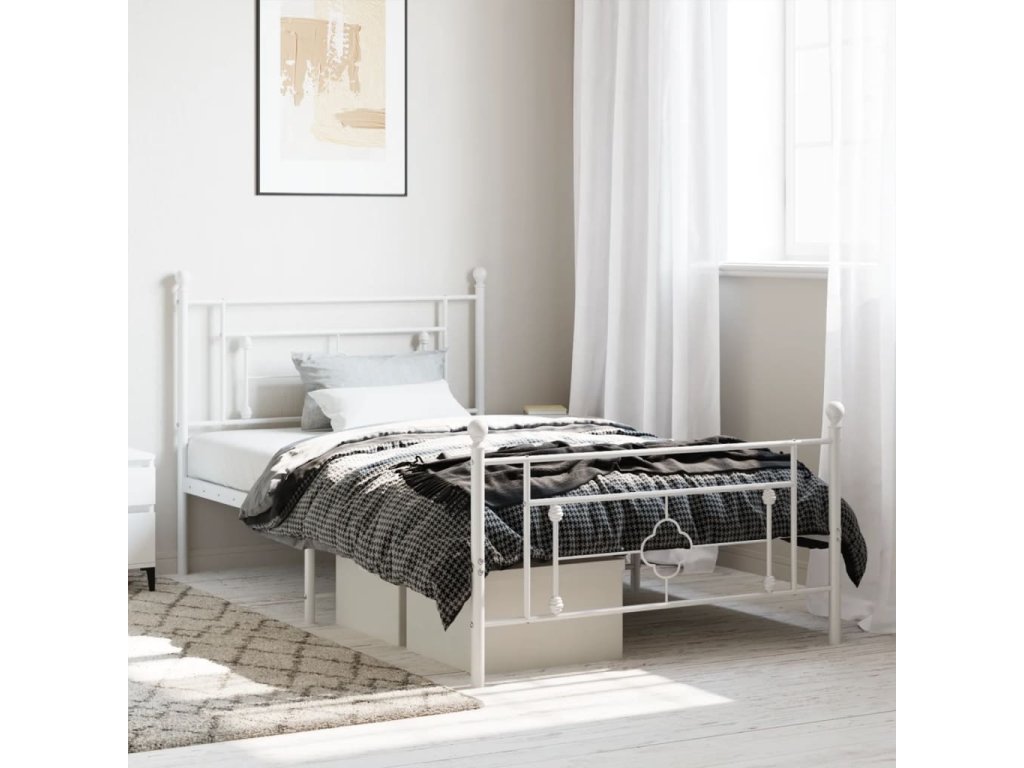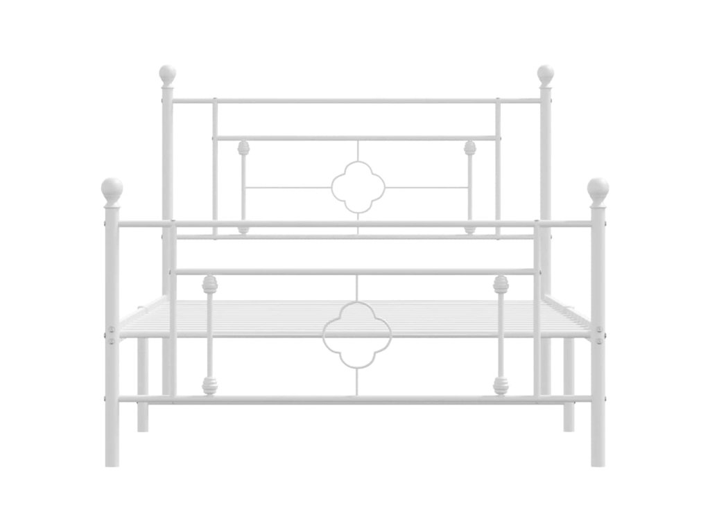 Kovový rám postele s hlavovým a nožním čelem bílý 107 x 203 cm 374402