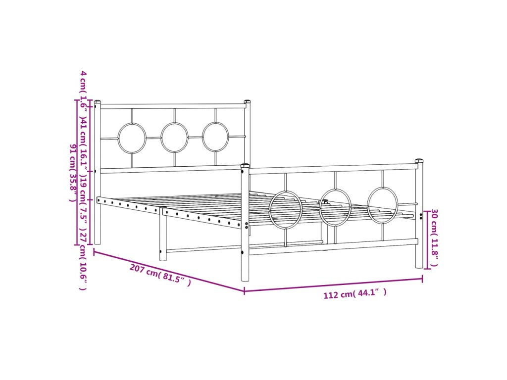 Kovový rám postele s hlavovým a nožním čelem bílý 107 x 203 cm 376289