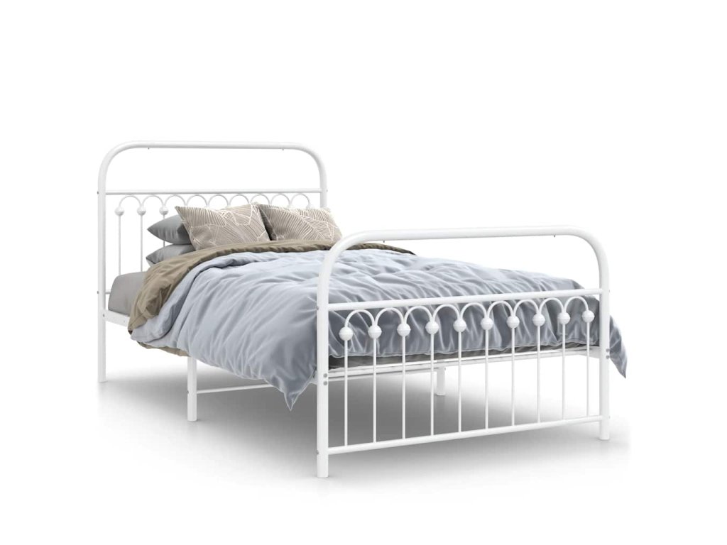 Kovový rám postele s hlavovým a nožním čelem bílý 107 x 203 cm 376663