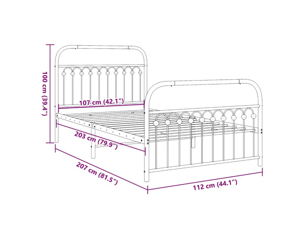 - Vhodné rozměry matrace: 107 x 203 cm (Š x D) (matrace není součástí balení)