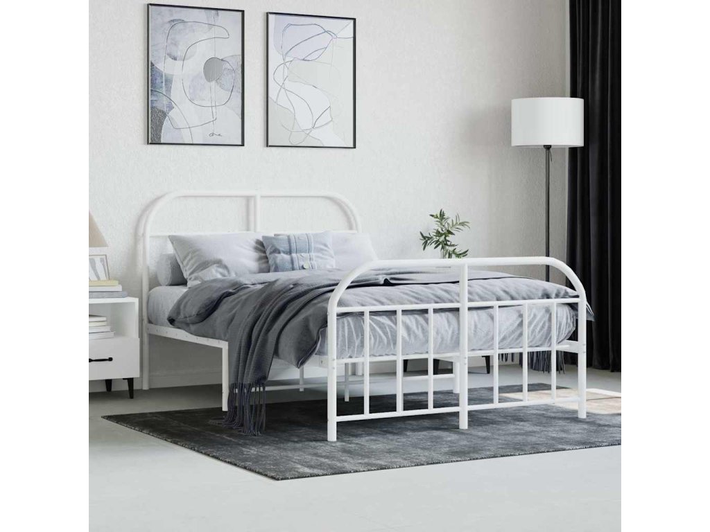 Kovový rám postele s hlavovým a nožním čelem bílý 120 x 190 cm 353699