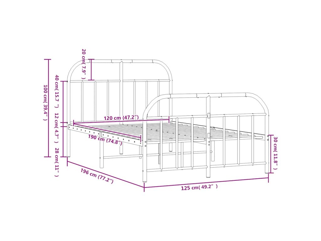 - Vhodné rozměry matrace: 120 x 190 cm (Š x D) (matrace není součástí balení)