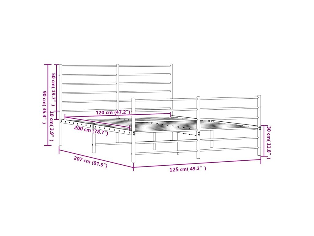 Kovový rám postele s hlavovým a nožním čelem bílý 120 x 200 cm 352384