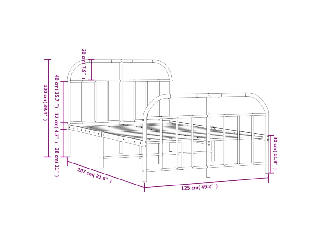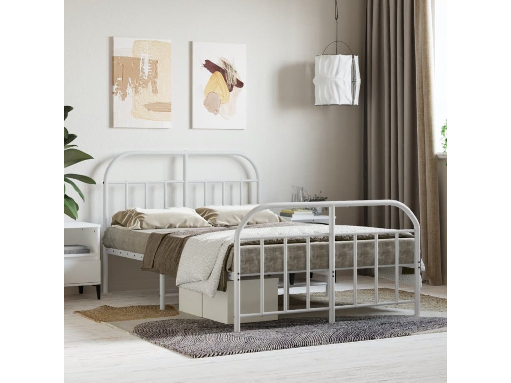 Kovový rám postele s hlavovým a nožním čelem bílý 120 x 200 cm 353700