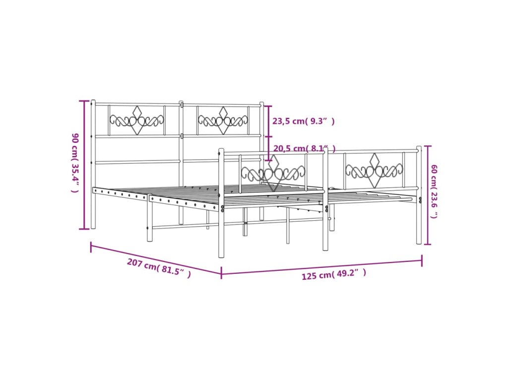 Kovový rám postele s hlavovým a nožním čelem bílý 120 x 200 cm 355332