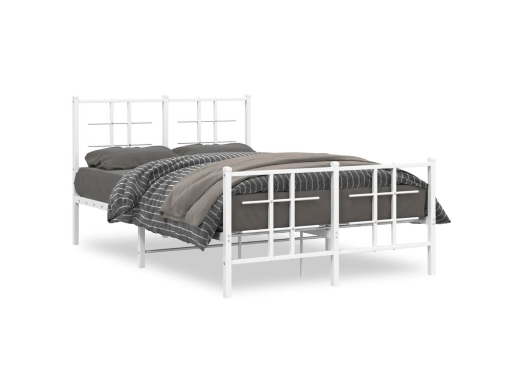 Kovový rám postele s hlavovým a nožním čelem bílý 120 x 200 cm 355626
