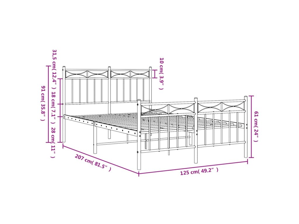 Kovový rám postele s hlavovým a nožním čelem bílý 120 x 200 cm 373756