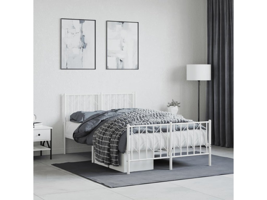 Kovový rám postele s hlavovým a nožním čelem bílý 120 x 200 cm 374502
