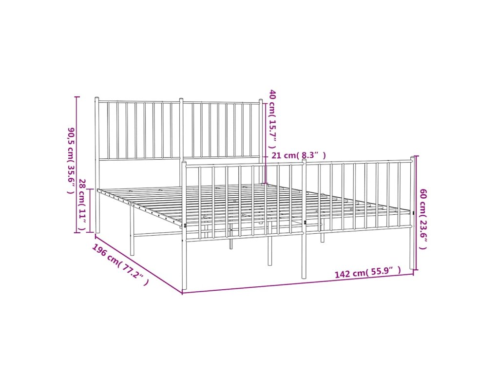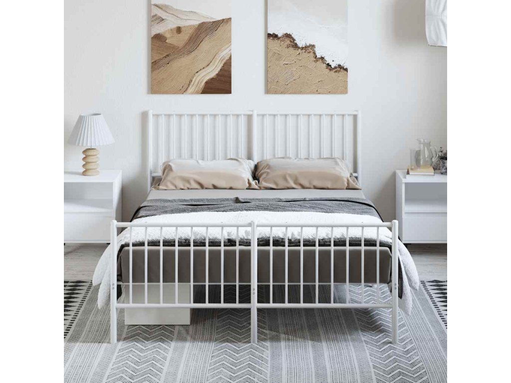 Kovový rám postele s hlavovým a nožním čelem bílý 135 x 190 cm 350948