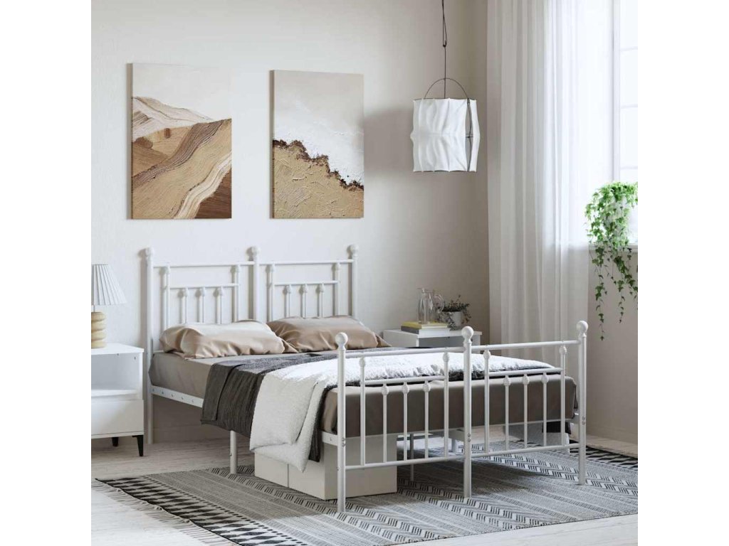 Kovový rám postele s hlavovým a nožním čelem bílý 135 x 190 cm 353603