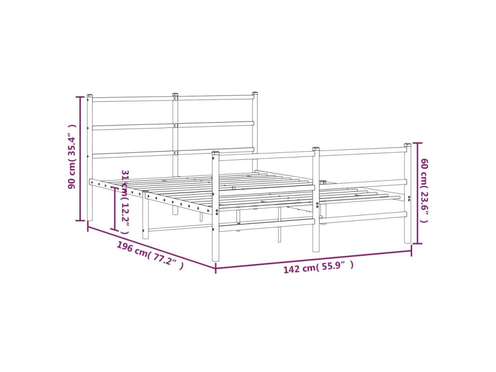 Kovový rám postele s hlavovým a nožním čelem bílý 135 x 190 cm 355431