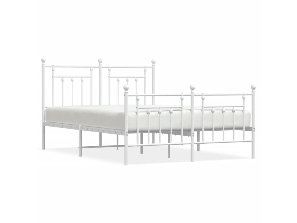 Kovový rám postele s hlavovým a nožním čelem bílý 140 x 190 cm 353604