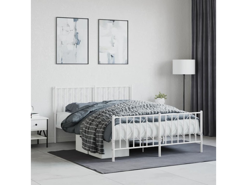 Kovový rám postele s hlavovým a nožním čelem bílý 140 x 190 cm 374504
