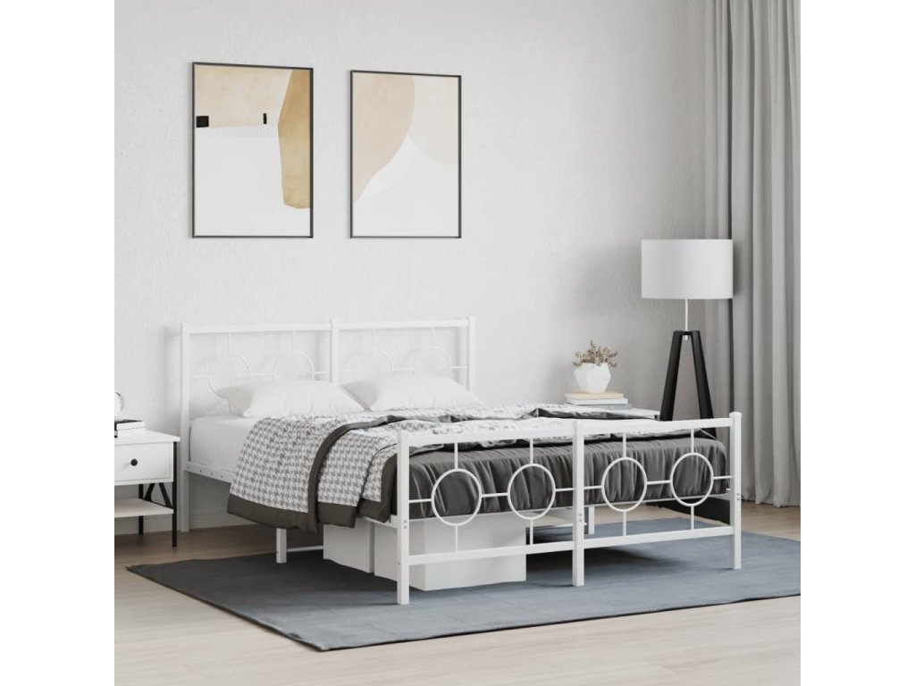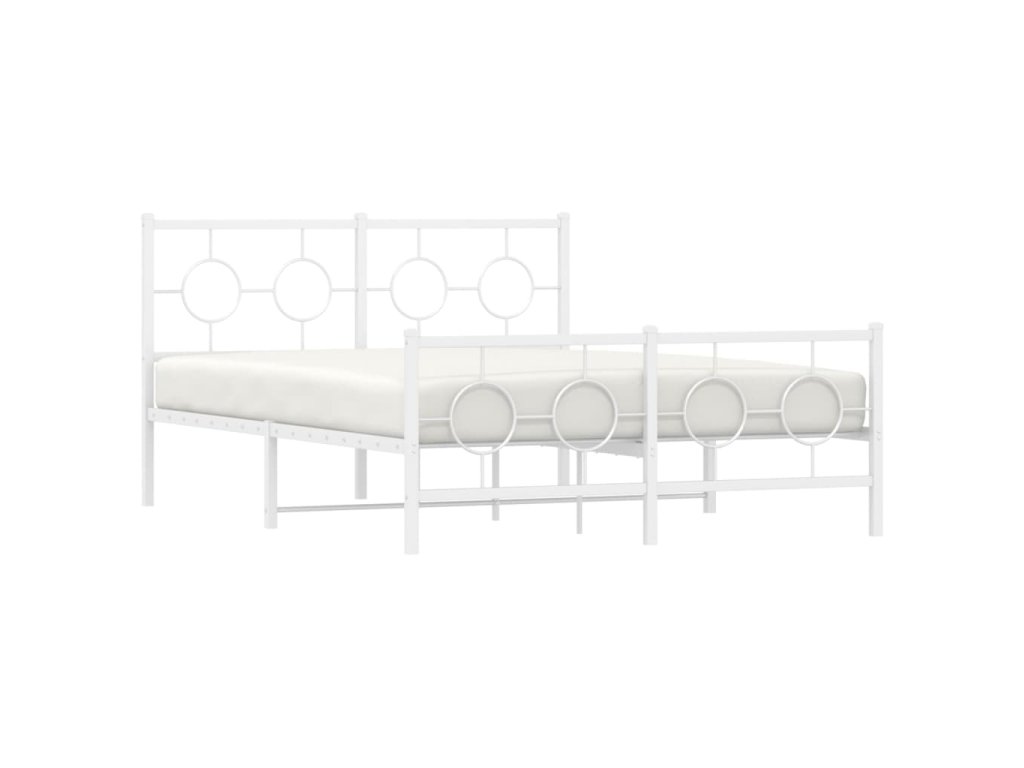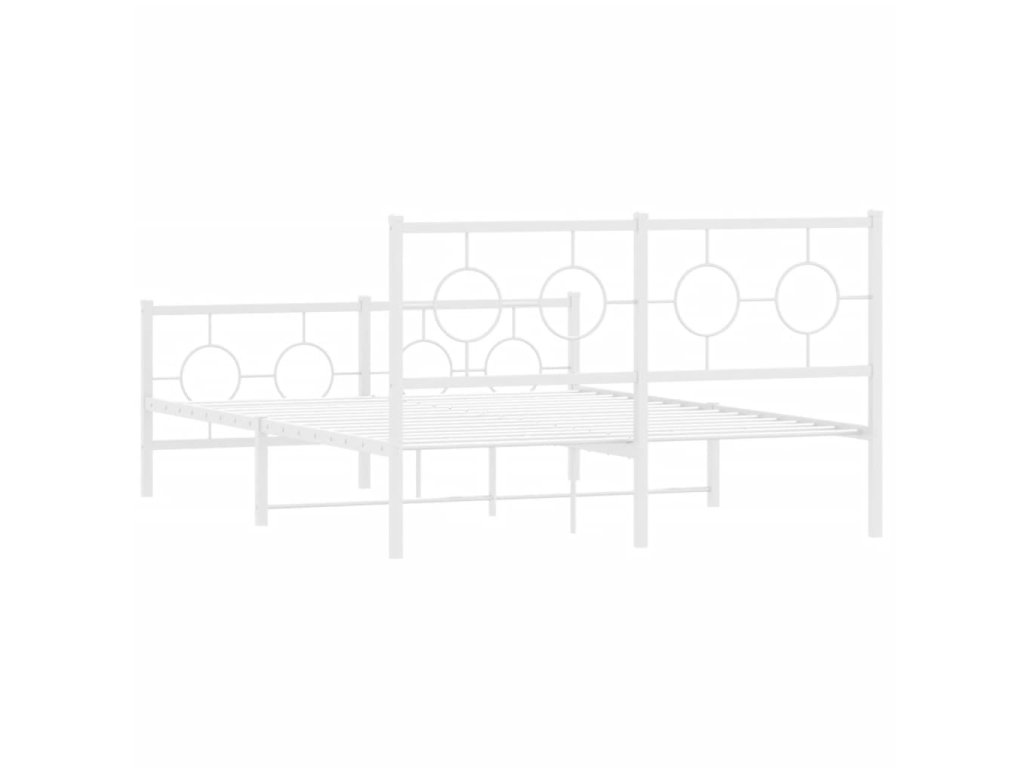 Kovový rám postele s hlavovým a nožním čelem bílý 140 x 190 cm 376293