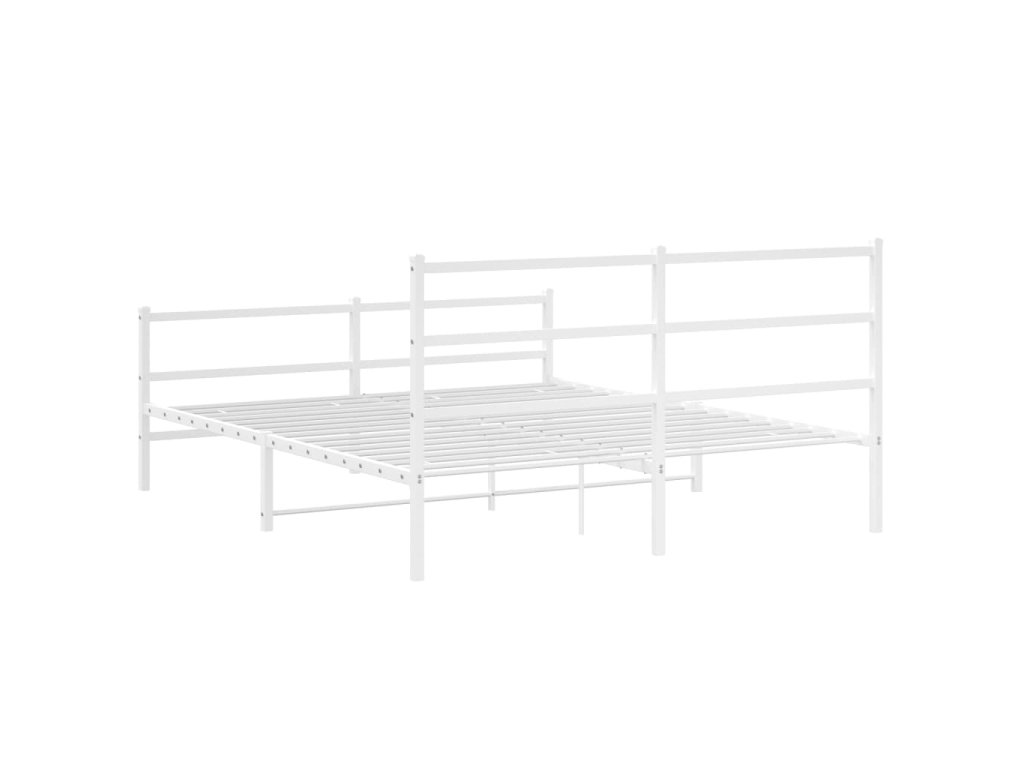 Kovový rám postele s hlavovým a nožním čelem bílý 150 x 200 cm 355434
