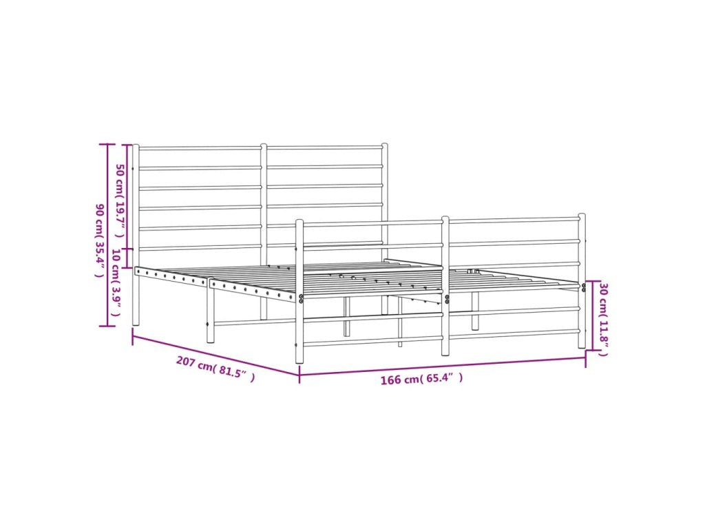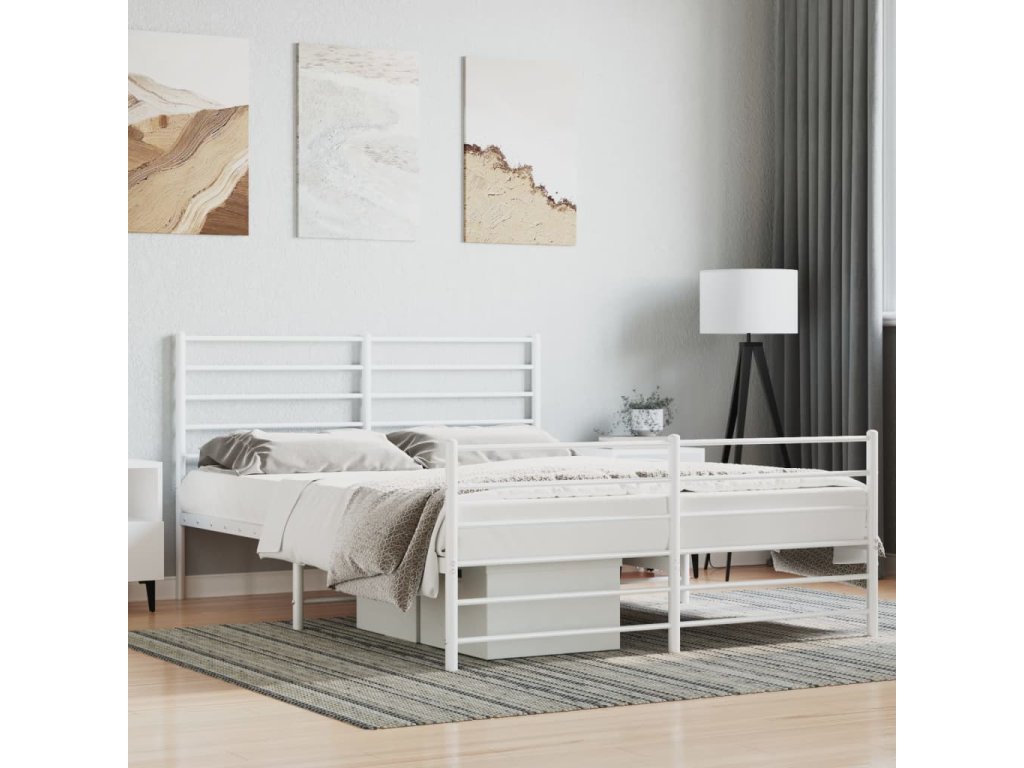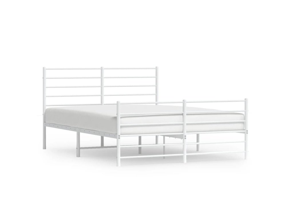 Kovový rám postele s hlavovým a nožním čelem bílý 160 x 200 cm 352389