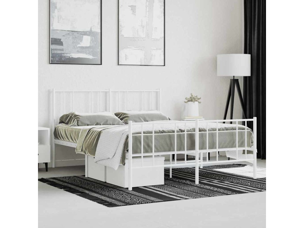 Kovový rám postele s hlavovým a nožním čelem bílý 160 x 200 cm 352550