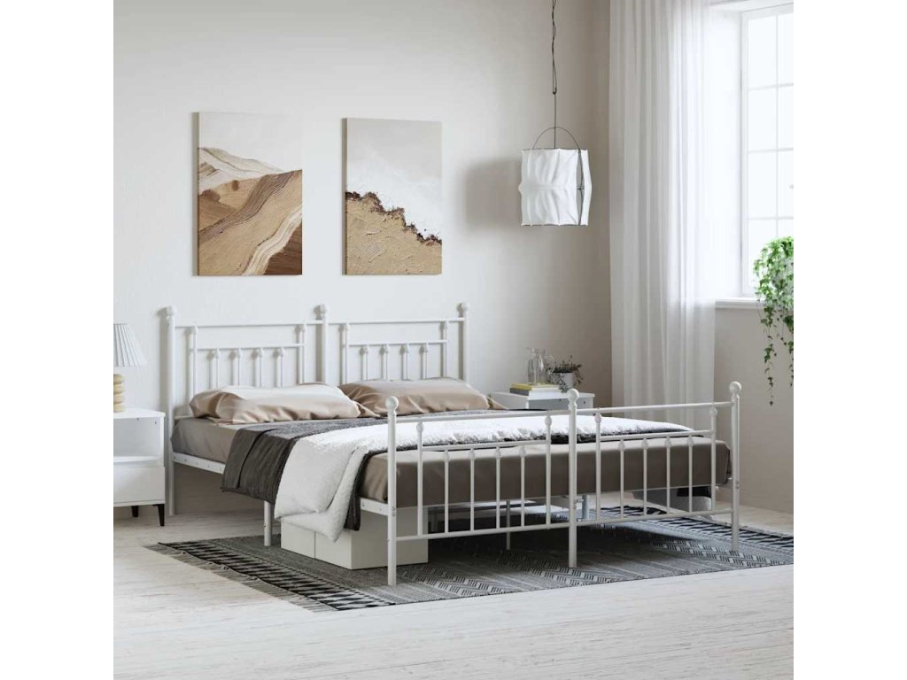 Kovový rám postele s hlavovým a nožním čelem bílý 183 x 213 cm 353609