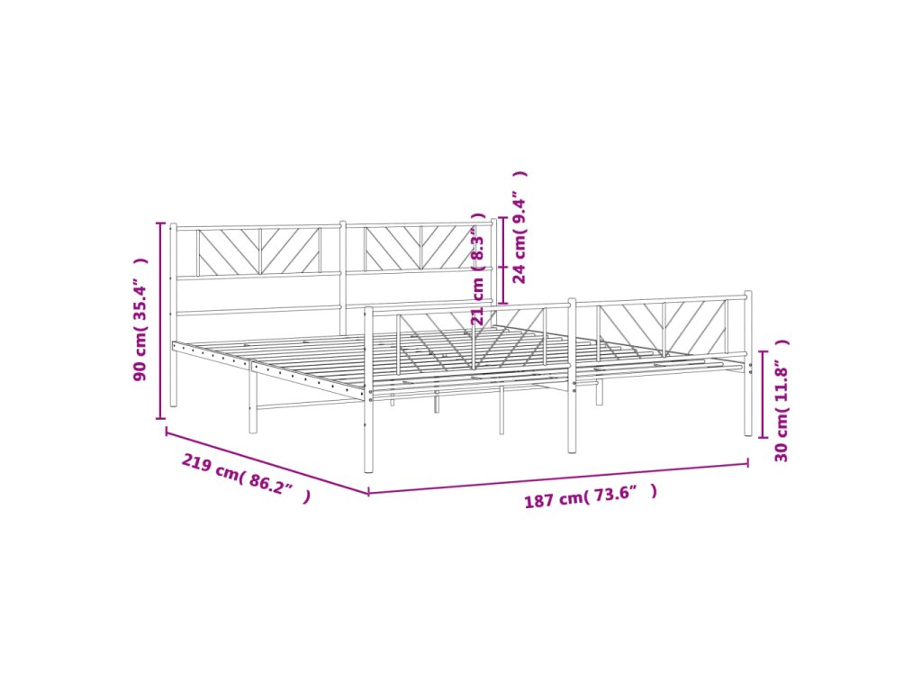 Kovový rám postele s hlavovým a nožním čelem bílý 183 x 213 cm 372251