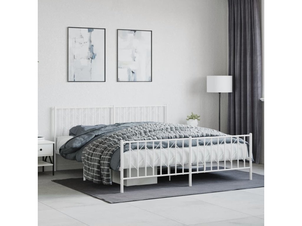 Kovový rám postele s hlavovým a nožním čelem bílý 183 x 213 cm 374509