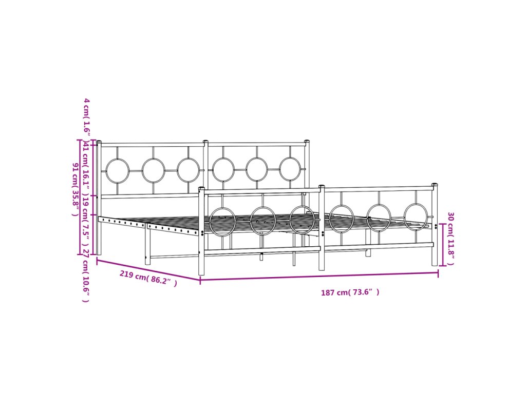 - Kovové lamely a nohy: Kovový rám postele je doplněn kovovými rošty a středovými nohami, které poskytují matraci tolik potřebnou oporu a prodyšnost.