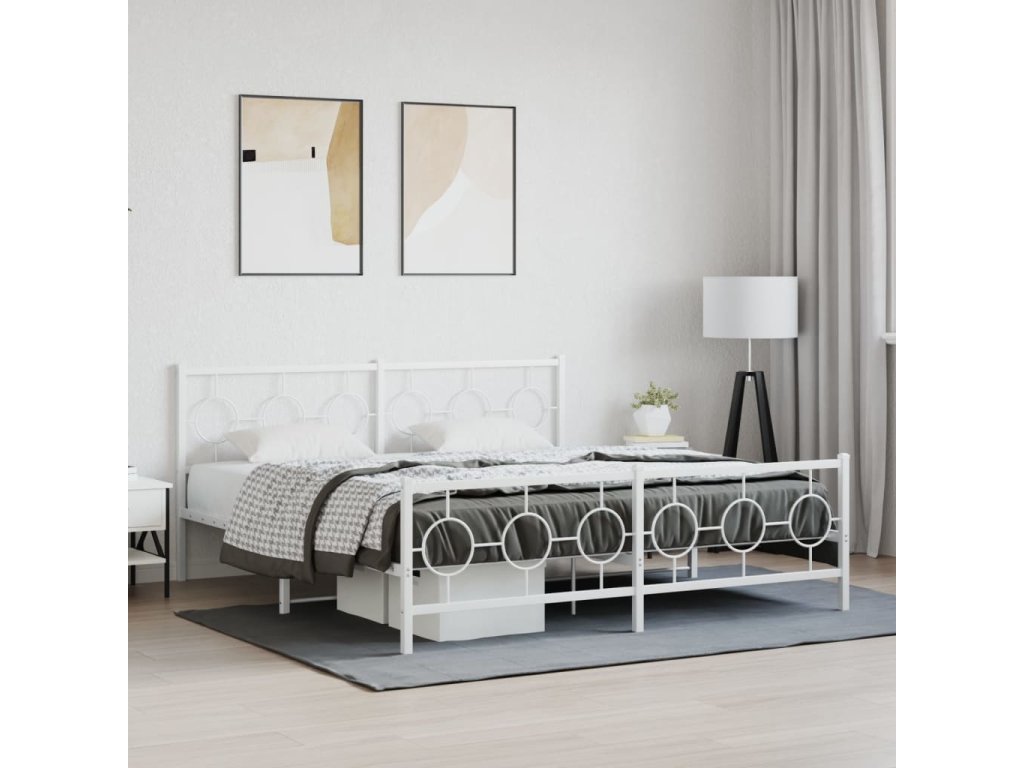Kovový rám postele s hlavovým a nožním čelem bílý 183 x 213 cm 376298